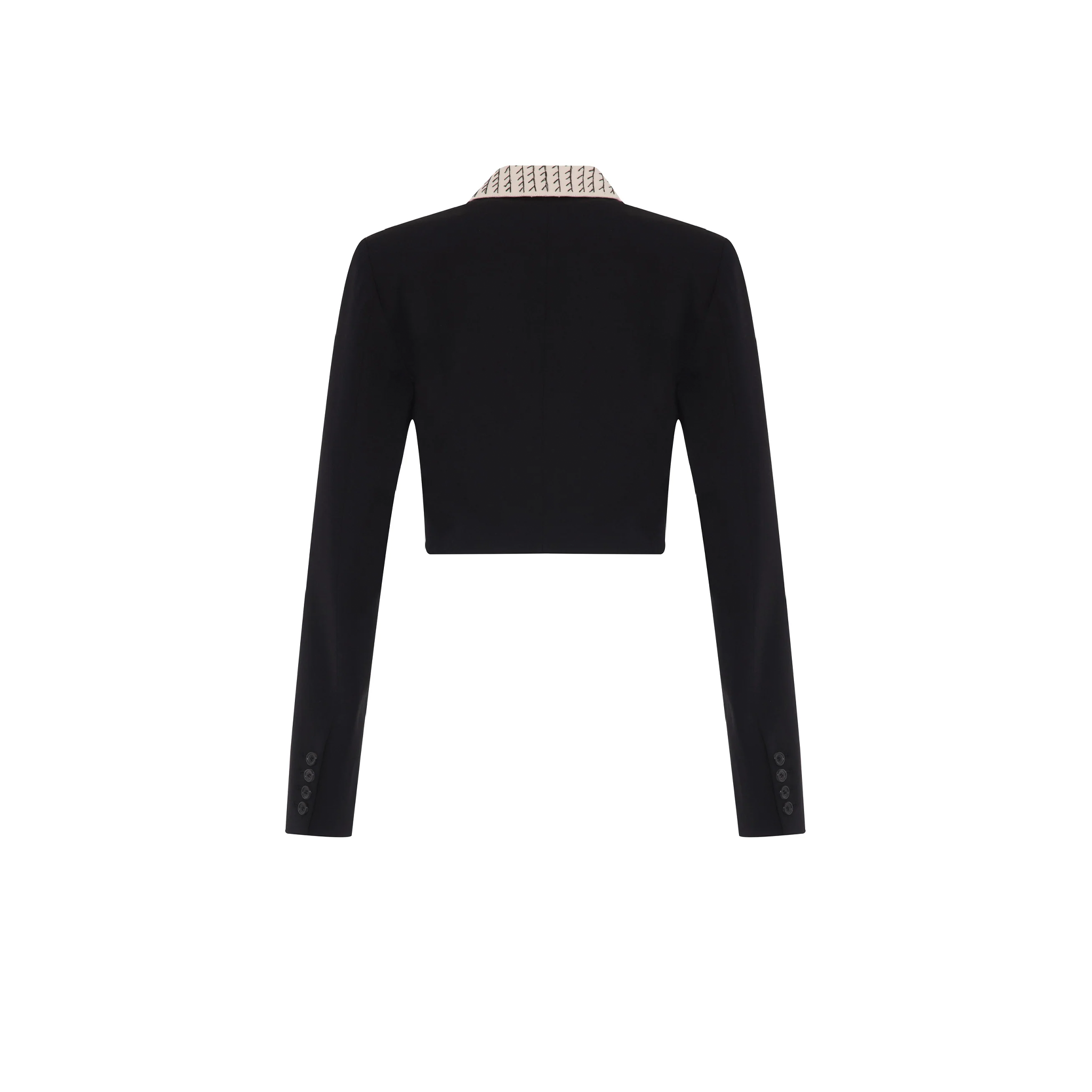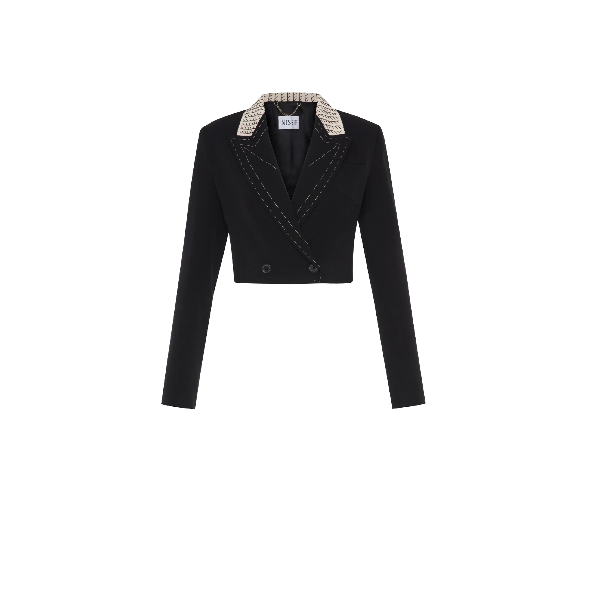 The Alima Tuxedo Jacket combines clean-lined elegance with classic smoking aesthetics. Its sleek form and striking silhouette make it the ideal style for every special occasion.