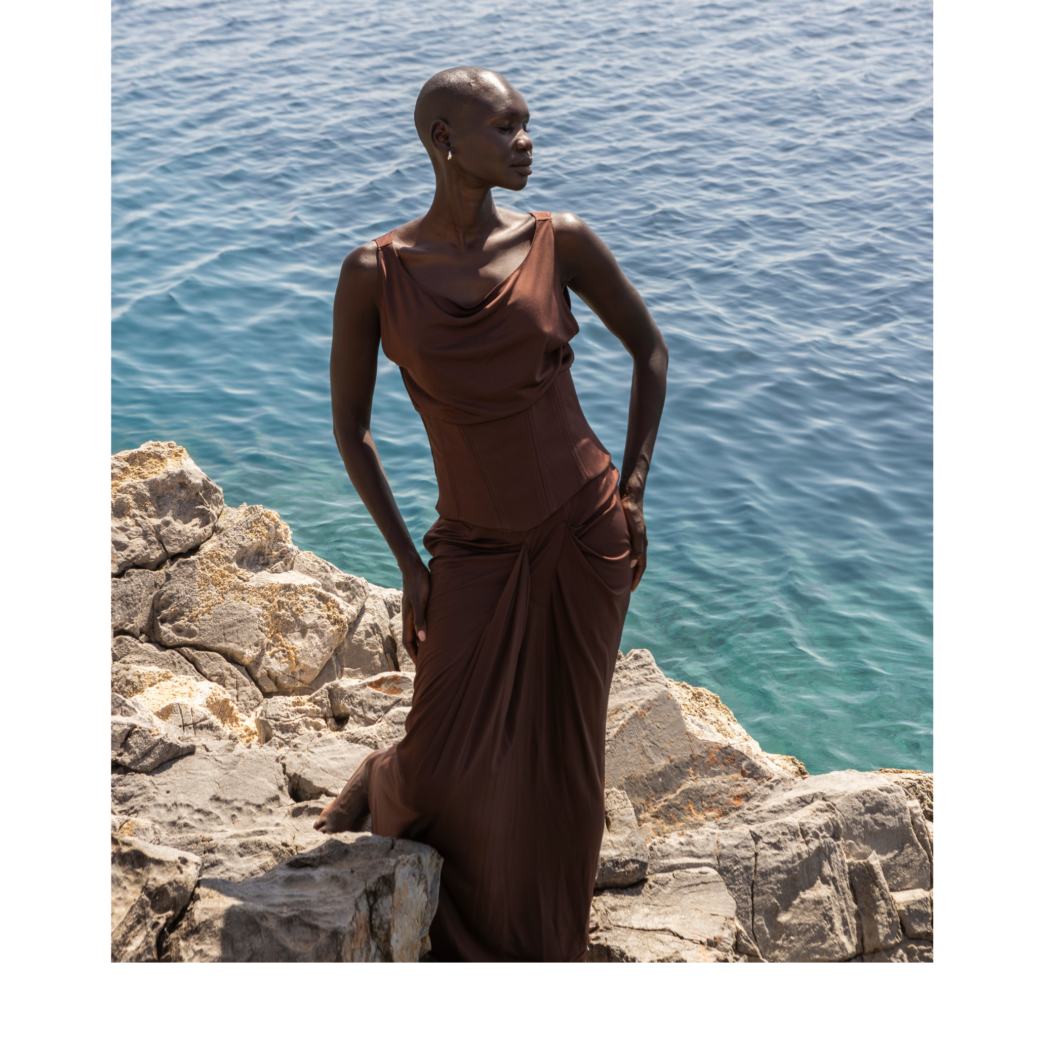 Crafted from Italian crepe, this blouse is designed with an integrated corset detail that elegantly hugs your waist.