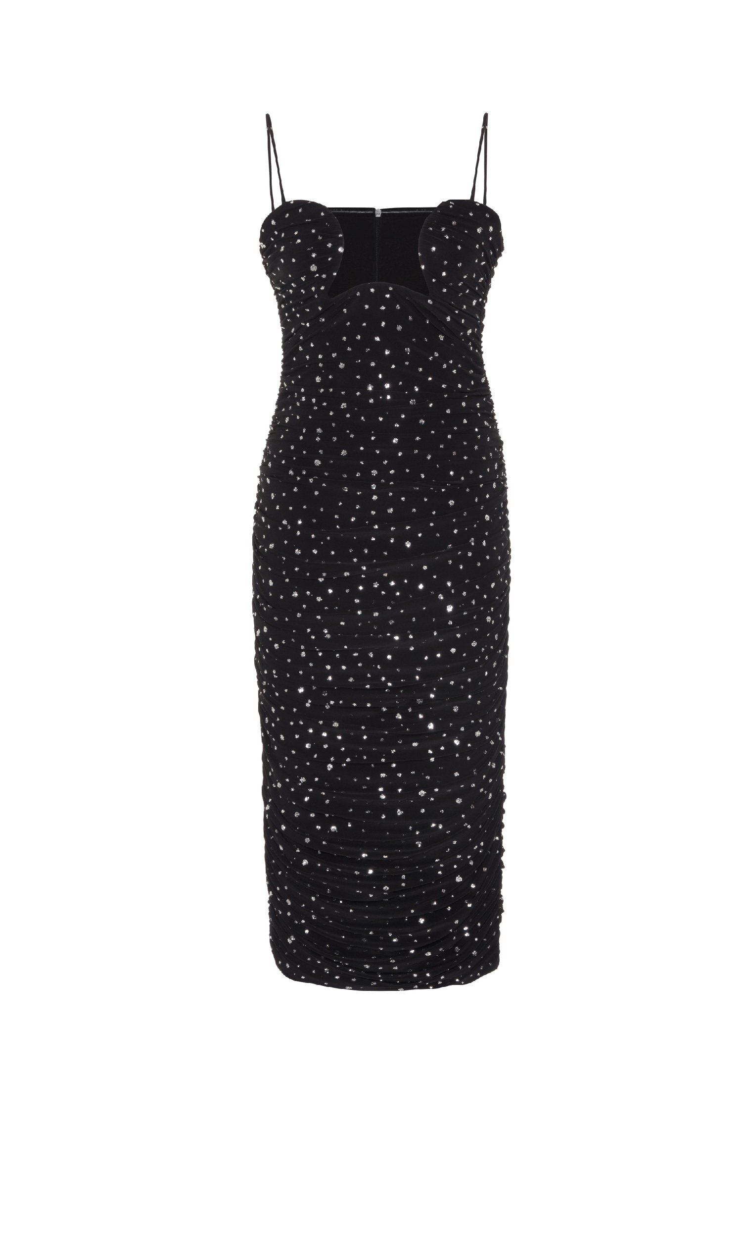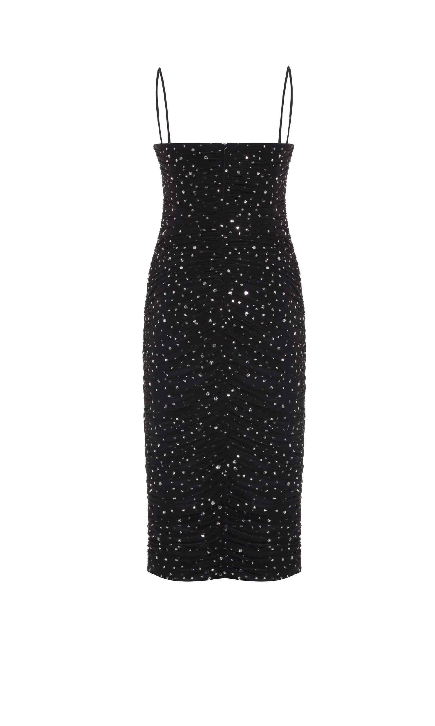 The Concha Dress offers lightweight flexibility with its 95% polyester and 5% elastane fabric. Its minimalist black design creates a stylish and modern look.