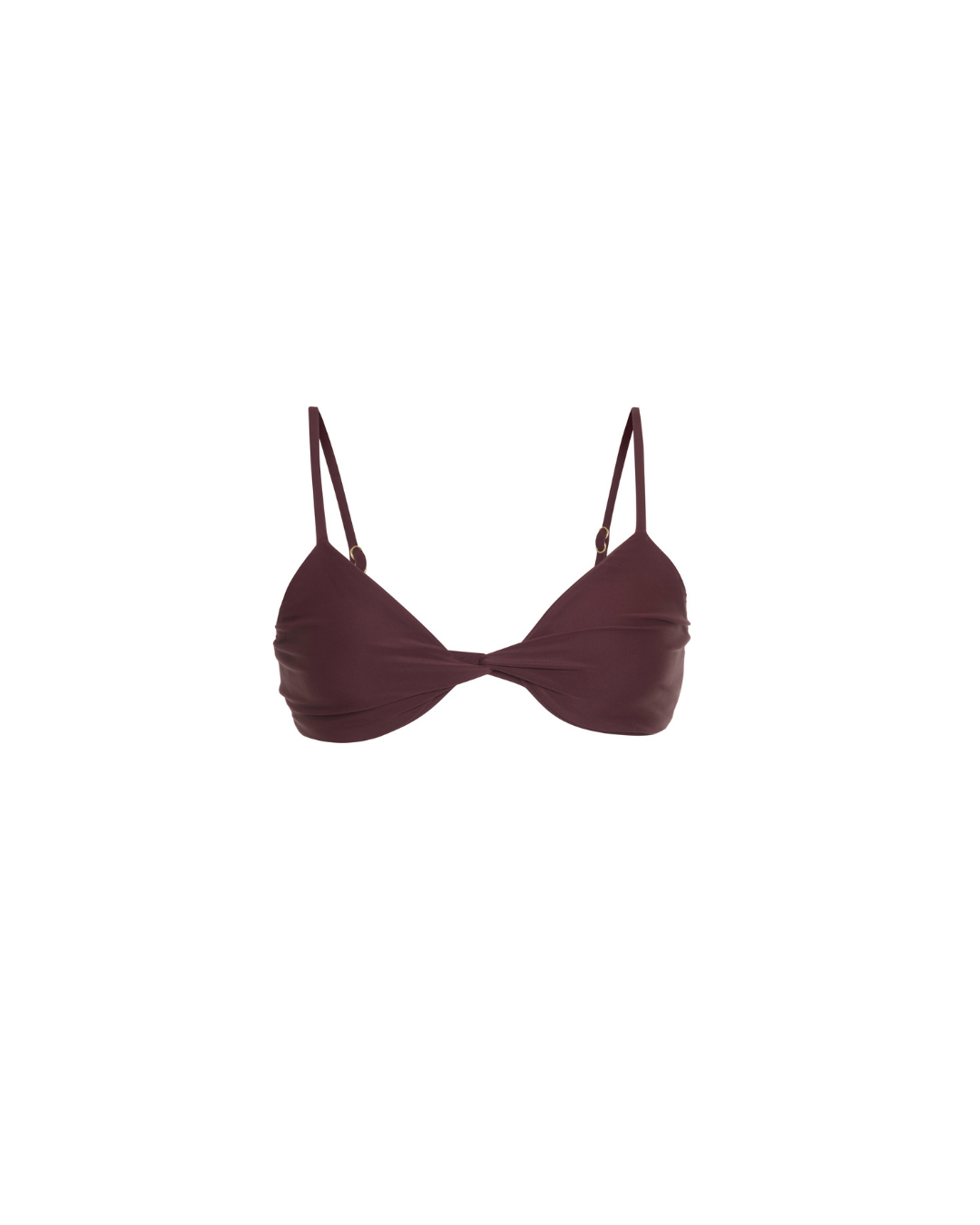 The Coral Bikini Top, made from a blend of 80% polyamide and 20% elastane, offers a smooth feel and a flexible fit. Its thin straps and simple cut elegantly hug the body, reflecting both comfort and femininity.