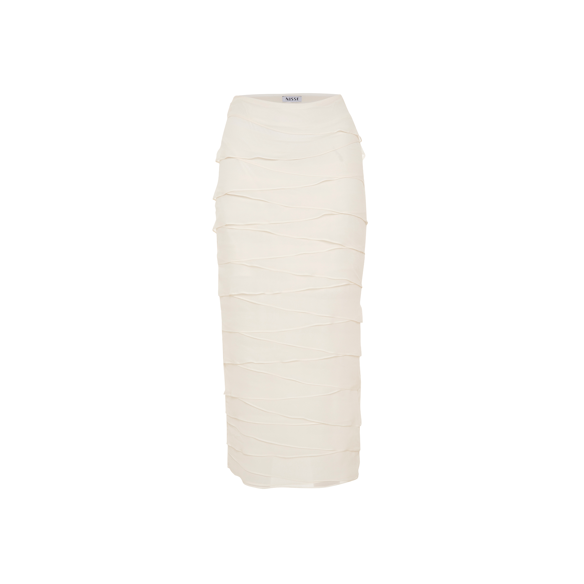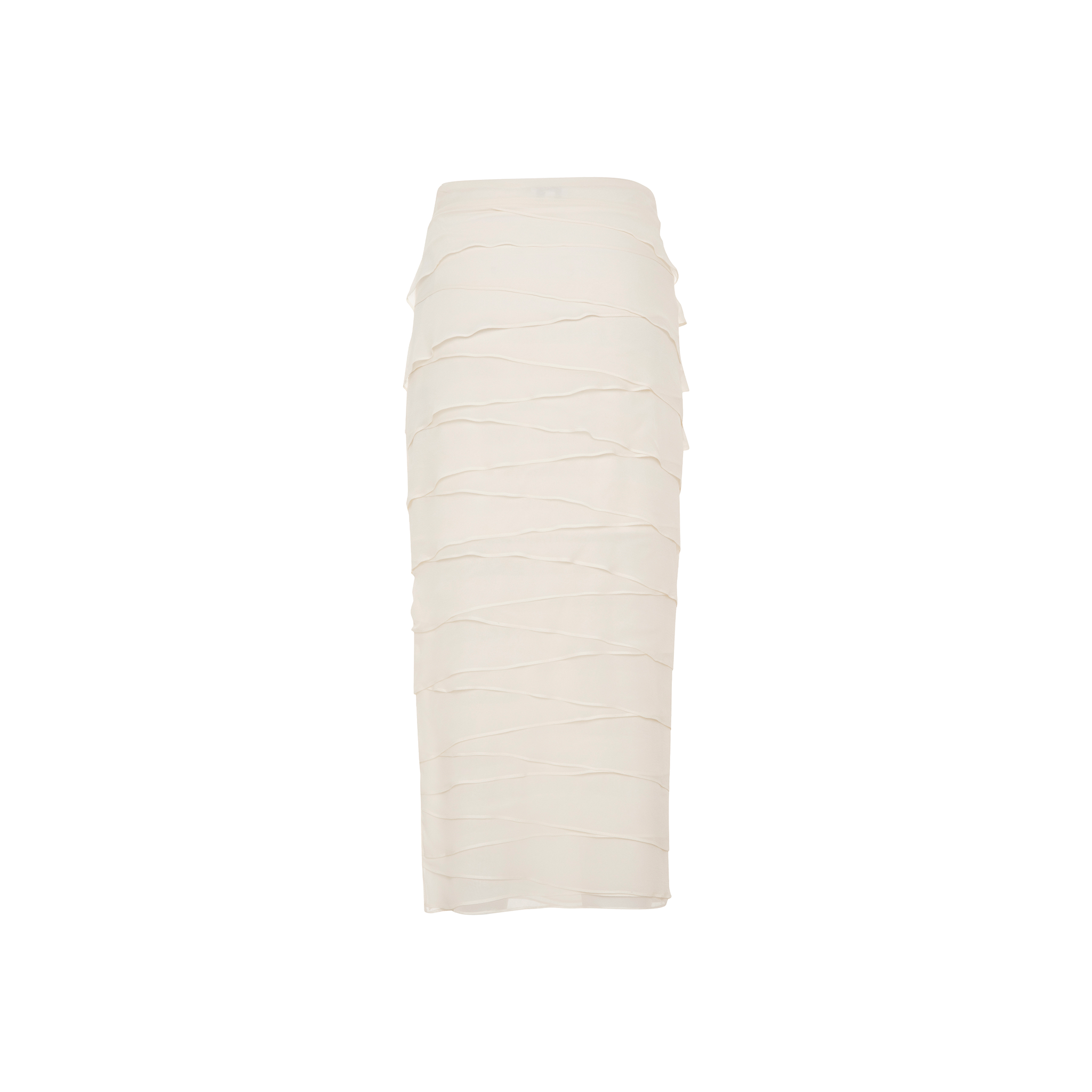 This stretchy silk maxi skirt is designed to elegantly hug your silhouette while captivating with its layered texture.