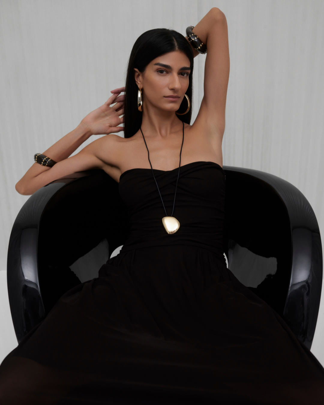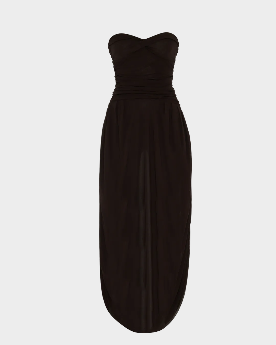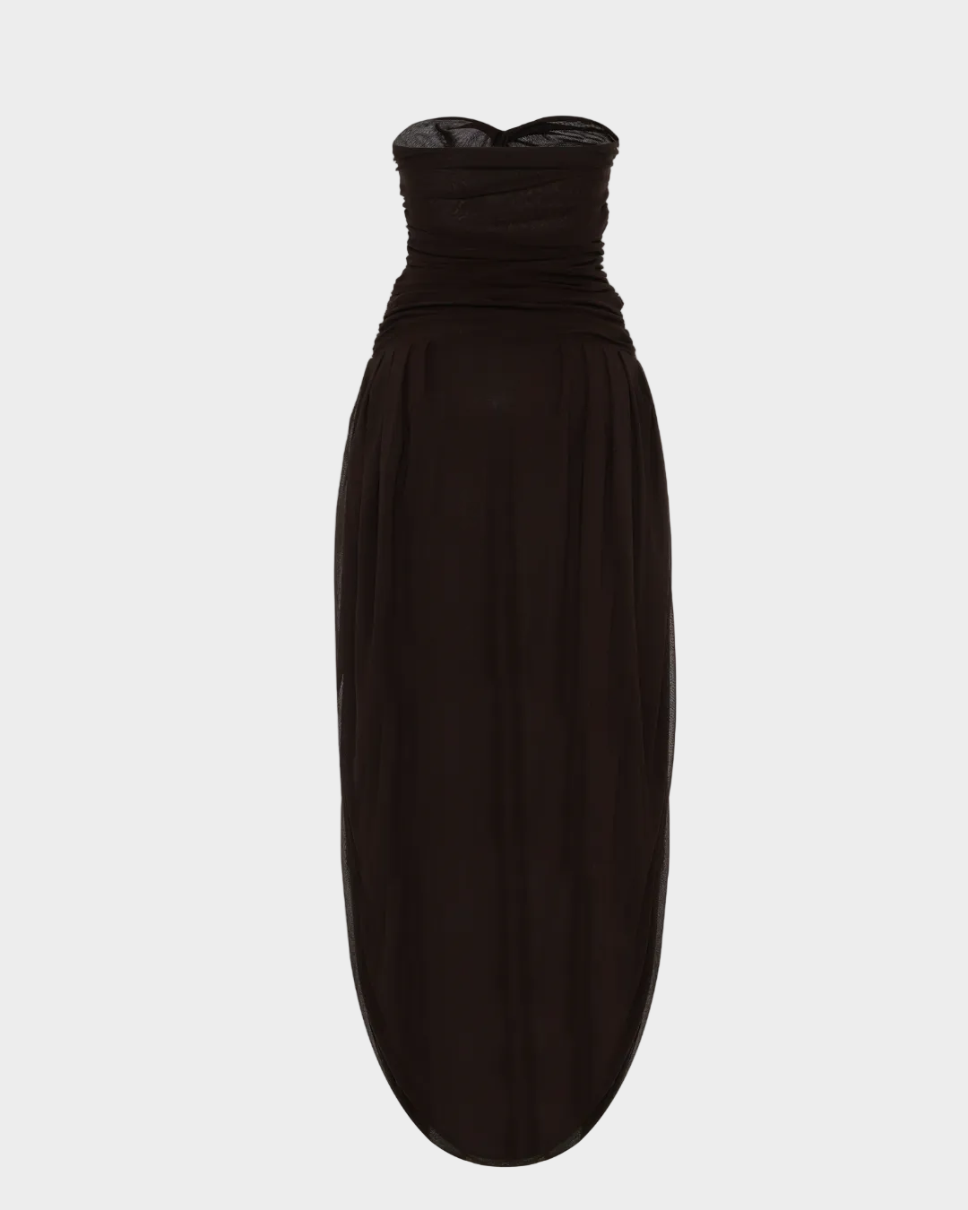 Vücudu vurgulayan drapeli silüeti ve karakteristik balon etek ucu ile bu elbise, zamansız feminenliği modern bir çekicilikle bir araya getirir. Özel davetlerde zarif ama etkileyici bir duruş sergilemek için tasarlanmıştır.