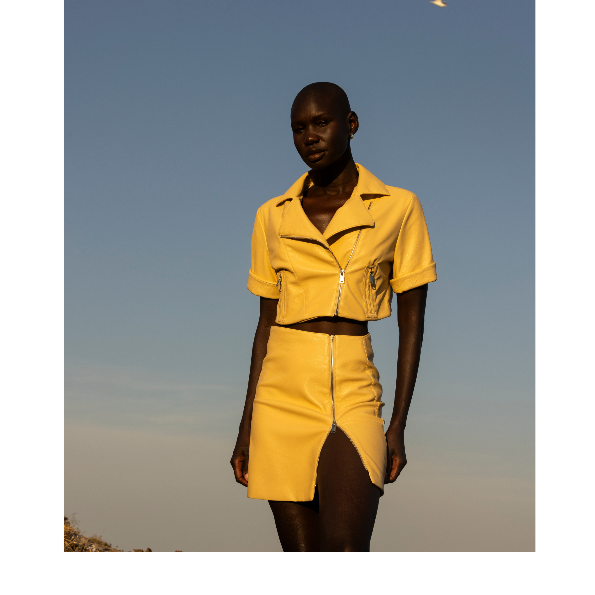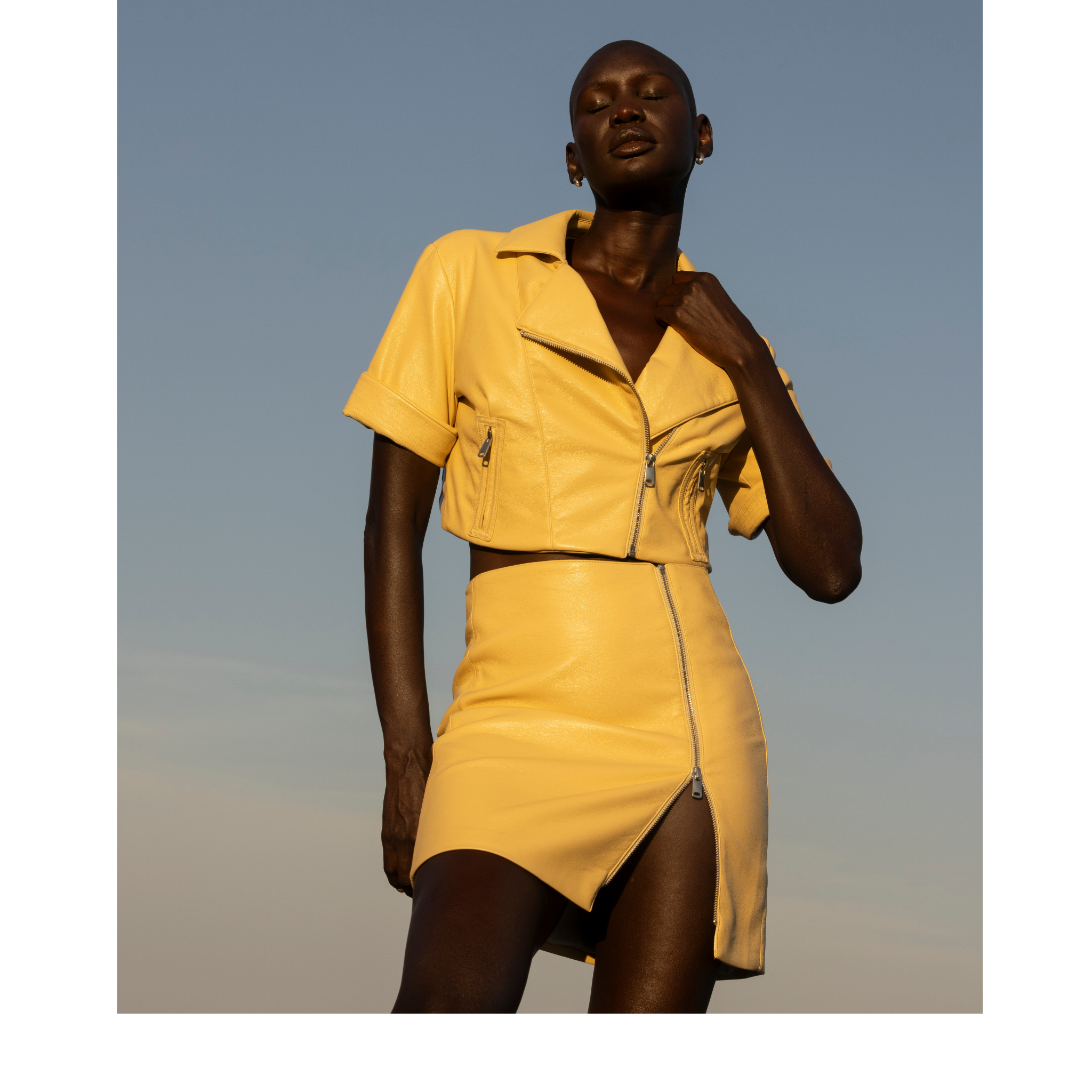 Made from soft, recycled leather, this mini skirt features a high-top zipper on the side for a stylish look in any setting.