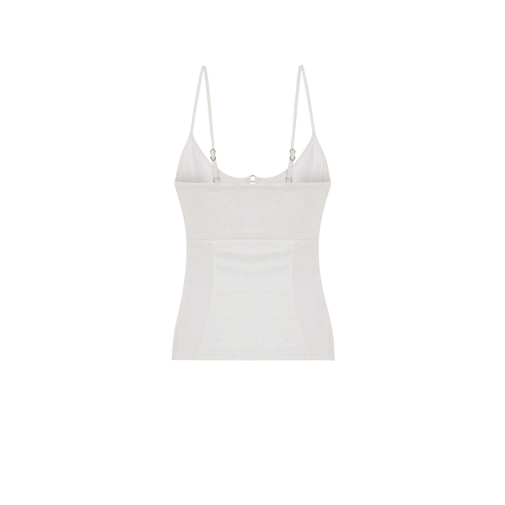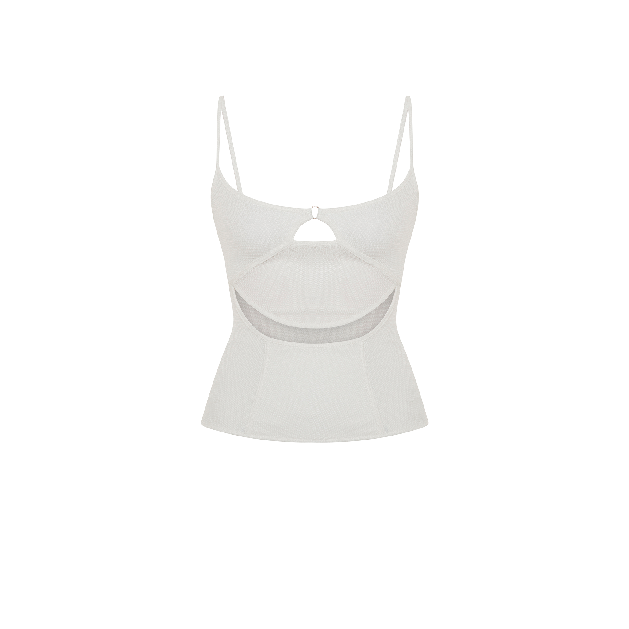 Featuring a curved hem, subtle window details, and a piping design, this unique tank top is a versatile piece for both casual and chic looks.