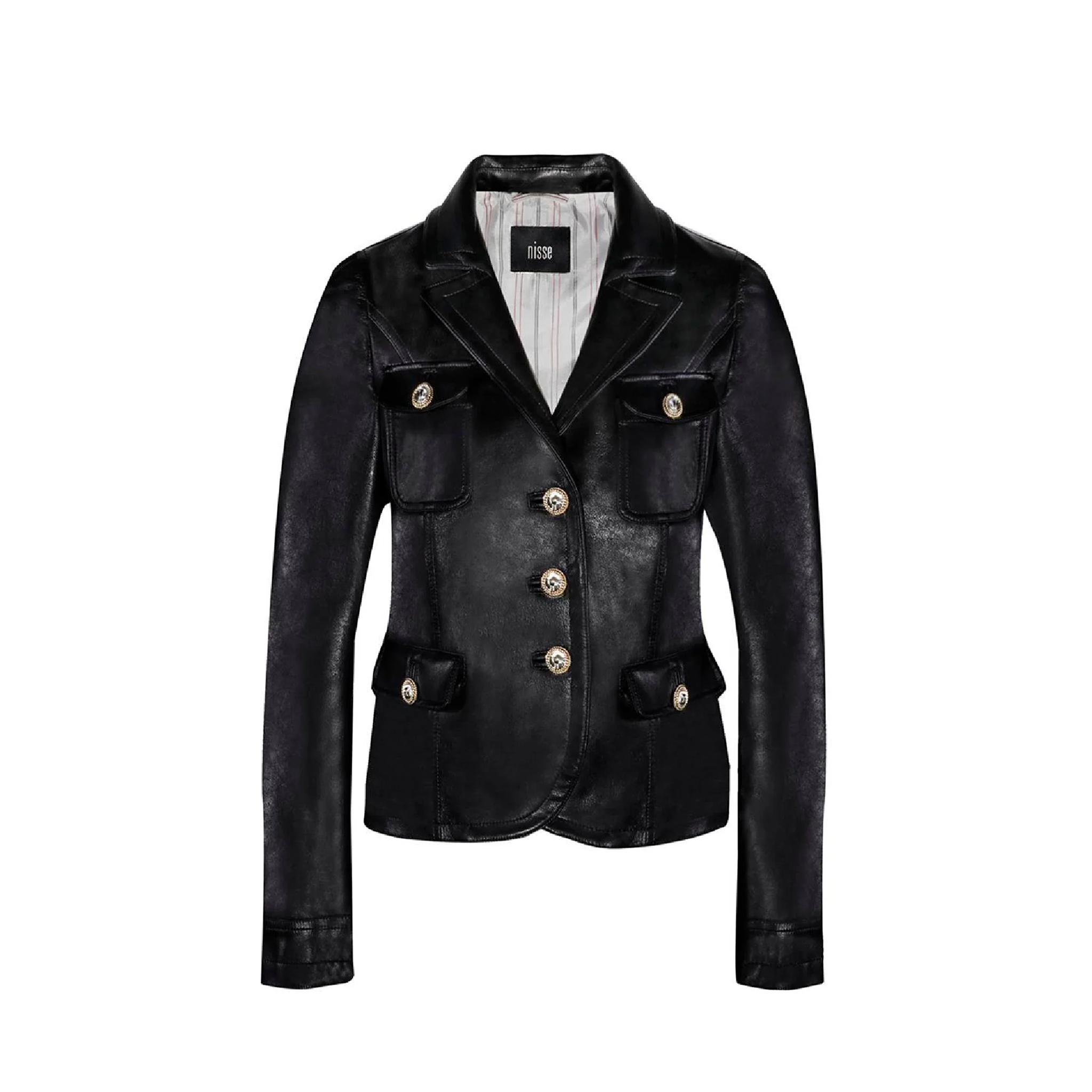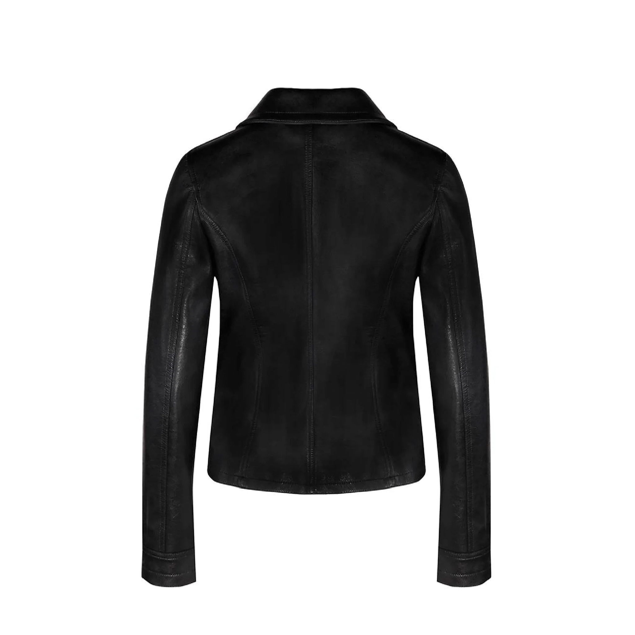 The Manon Leather Jacket offers a modern and elegant outerwear experience with its vegan leather main fabric composed of 27% cotton, 51% polyester, and 22% polyurethane, while its lining is made of 100% viscose. Its structured cut in black makes it a timeless piece that adds a sophisticated and powerful style to the feminine silhouette.