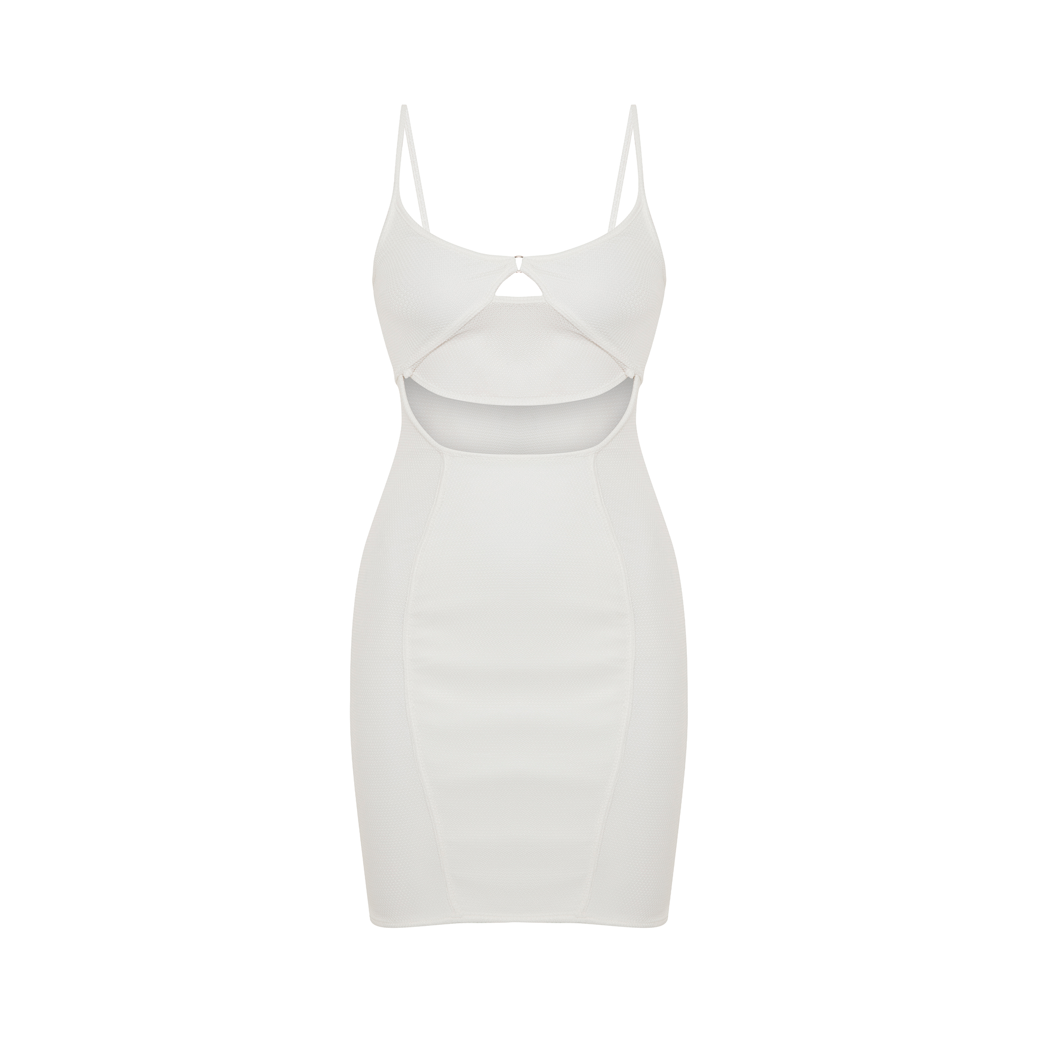 Make a statement with this fitted dress; its form-fitting design perfectly accentuates your figure, highlighting your curves. Its subtle window details, elegant seam transitions, and curved waistline create a captivating look.