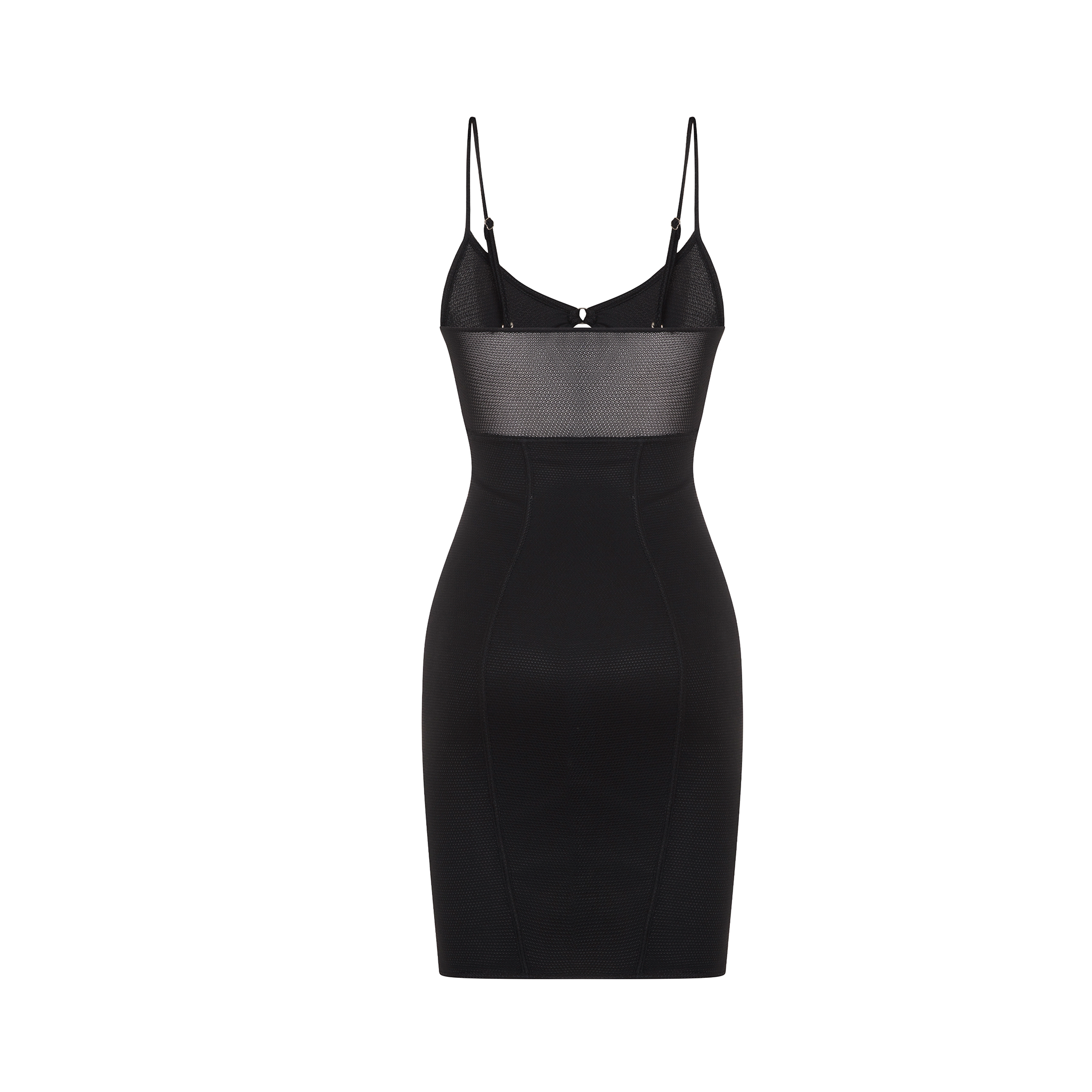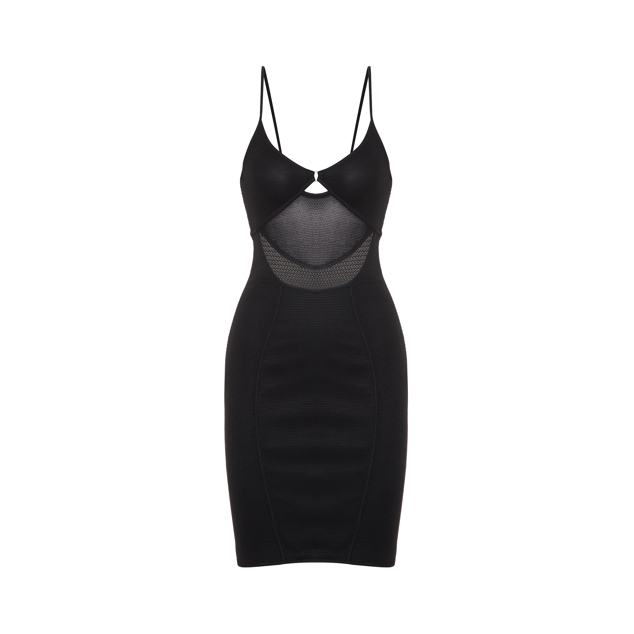 Make a statement with this fitted dress; its form-fitting design perfectly accentuates your figure, highlighting your curves. Its subtle window details, elegant seam transitions, and curved waistline create a captivating look.