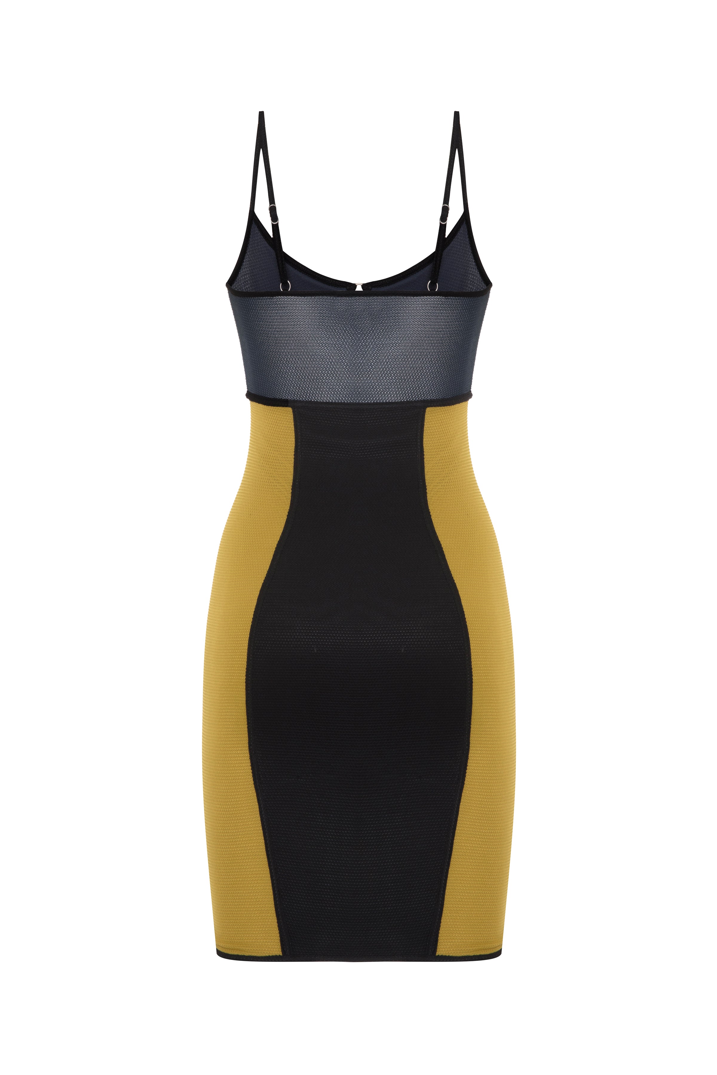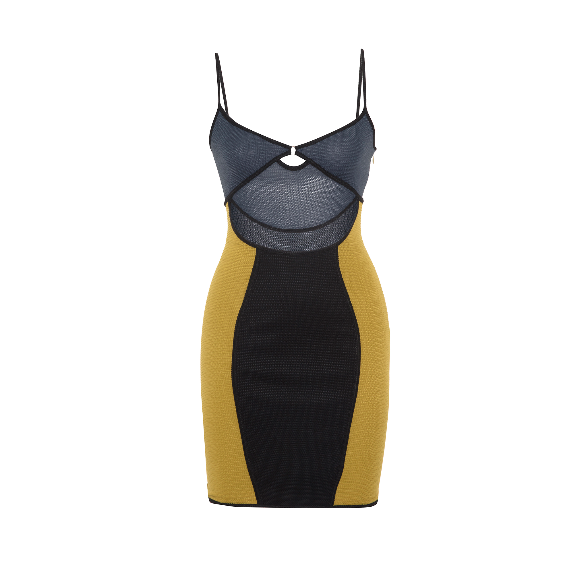 Make a statement with this fitted dress; its form-fitting design perfectly accentuates your figure, highlighting your curves. Its subtle window details, elegant seam transitions, and curved waistline create a captivating look.