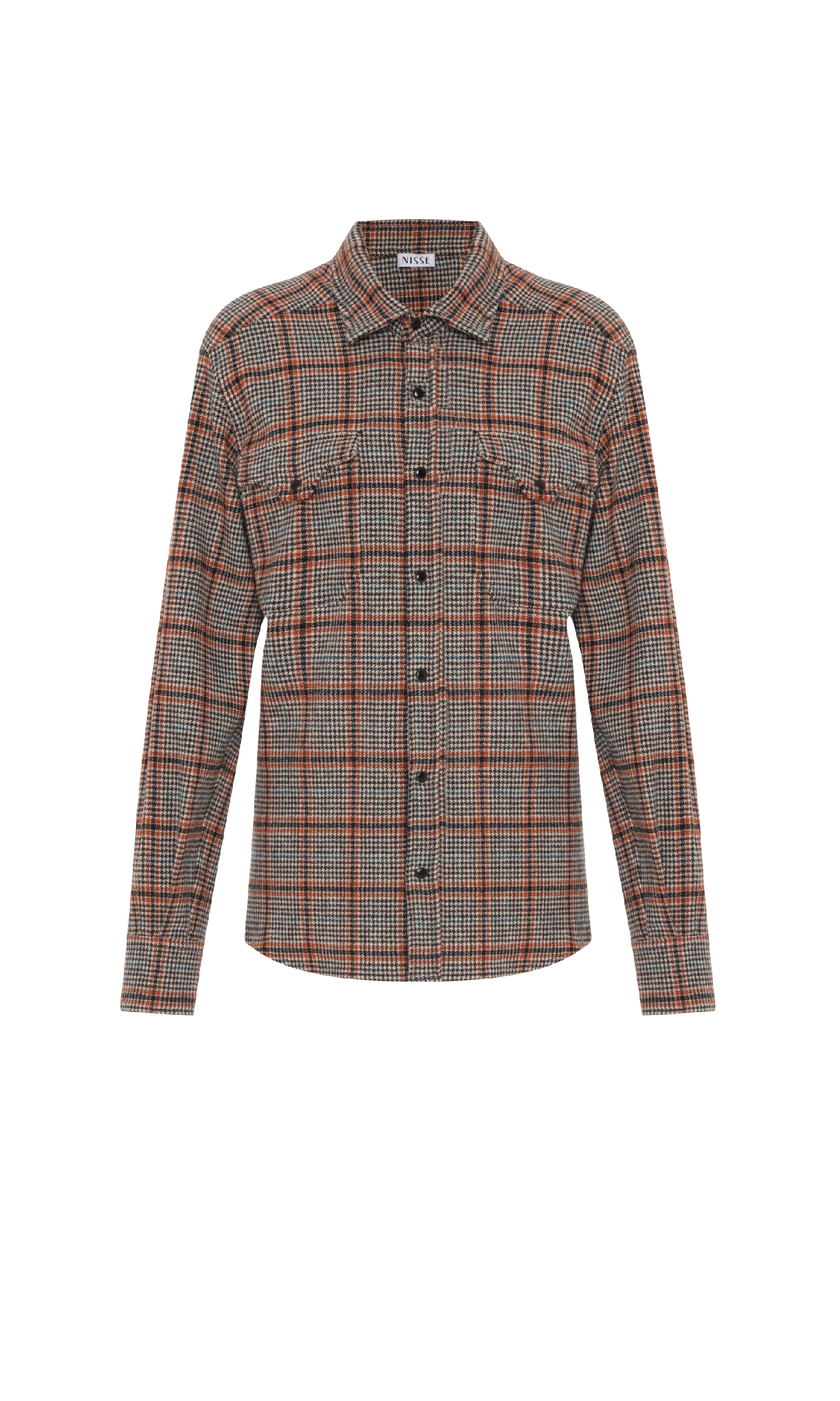 Newell Plaid Shirt offers both a warm texture and a flexible fit with its blend of 75% pure wool, 18% polyamide and 7% elastane. . Its oversize cut and masculine silhouette combine the nostalgia of plaid pattern with today's elegance.