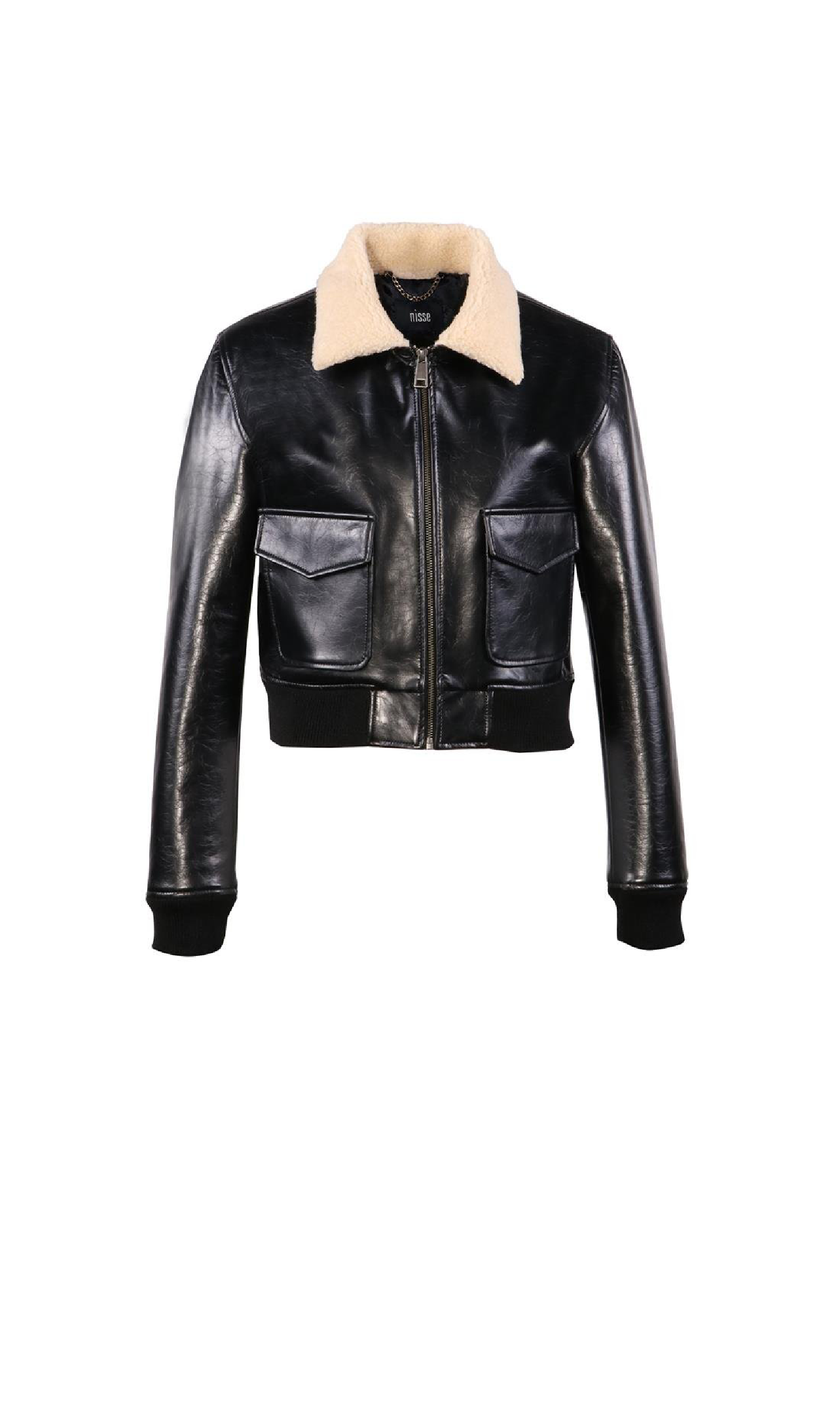 The Roxie Leather Jacket offers a striking piece with its modern and elegant design. Its vegan leather fabric, crafted from a blend of 56% polyurethane, 40.5% polyester, and 3.5% elastane, provides a flexible and stylish structure. Its 100% polyester lining provides a comfortable wear experience, while contrasting details featuring 87% polyester, 7% polyurethane, and 6% cotton create a harmonious whole.