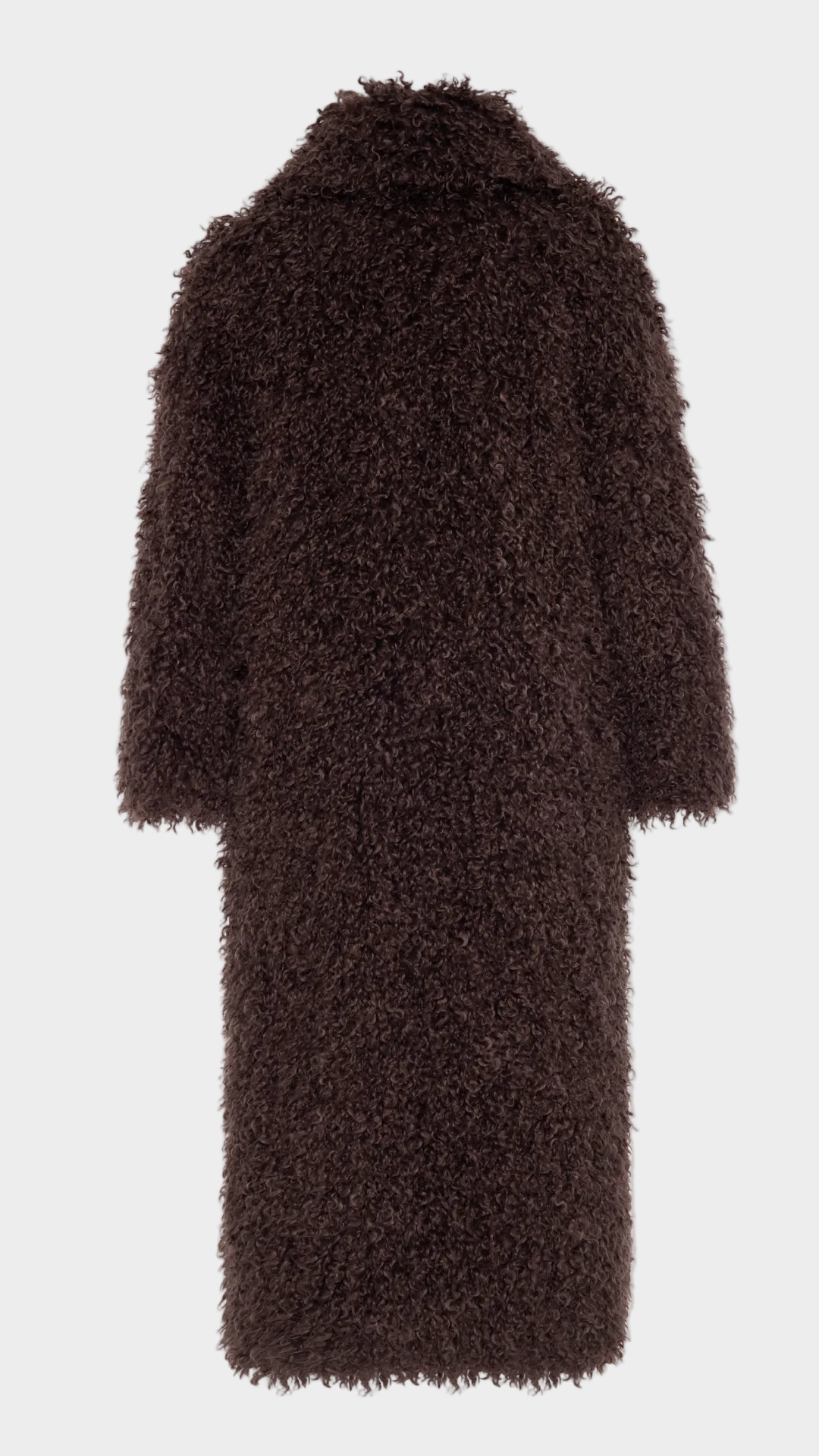 Yaka detayına sahip uzun kürk kaban, kürkün yün bir taban üzerine özenle yerleştirildiği benzersiz tasarımıyla dikkat çeker. İç kısımdaki esnek astar konfor ve hareket özgürlüğü sağlayarak lüks ve sıcaklığı mükemmel bir şekilde dengeler.