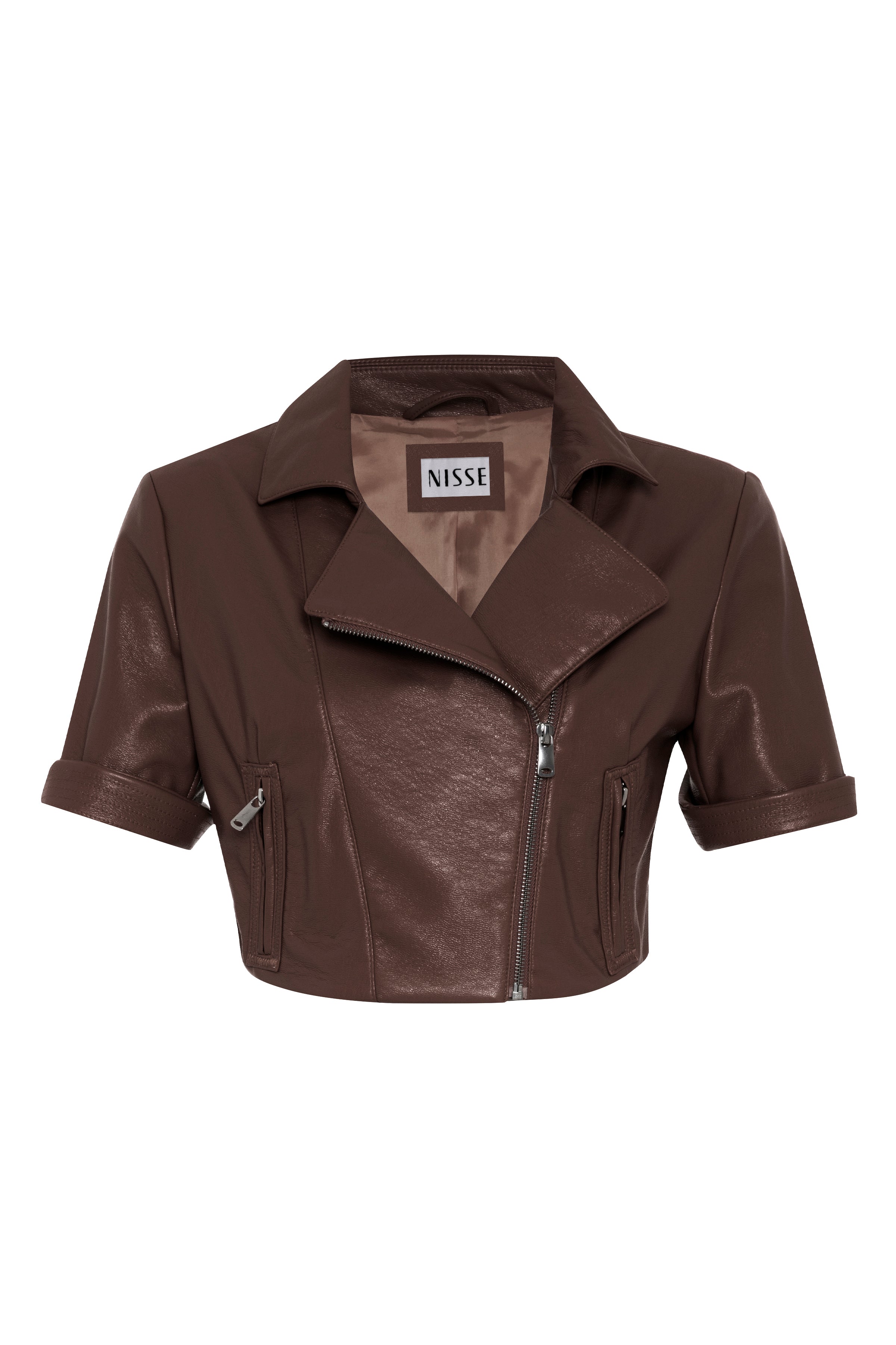 Diğer geri dönüştürülmüş deri parçalarımızla mükemmel uyum sağlayacak şekilde tasarlanan bu kısa kesim ceket, yumuşacık geri dönüştürülmüş derisiyle günlük stilinizi bir üst seviyeye taşır.