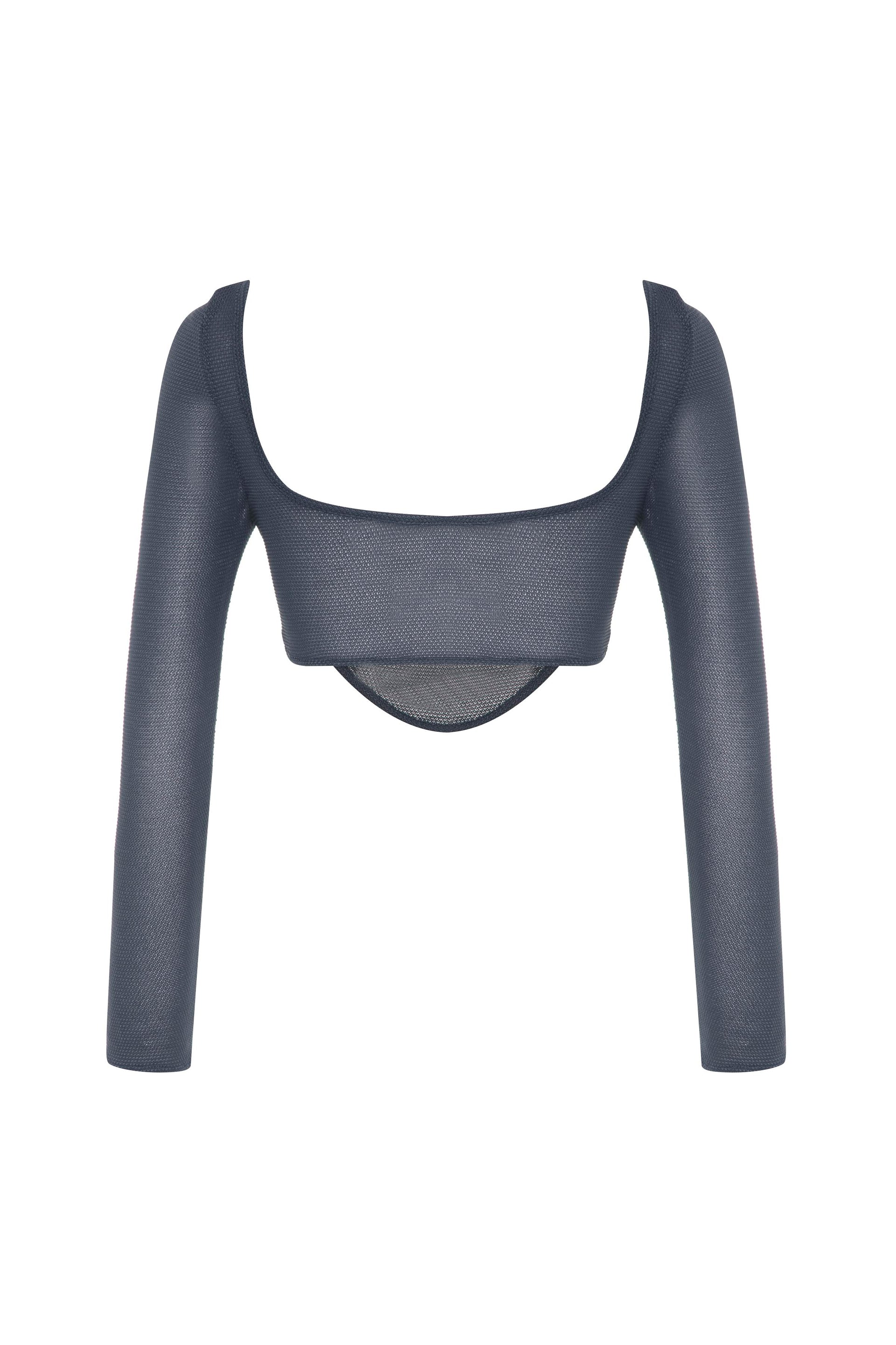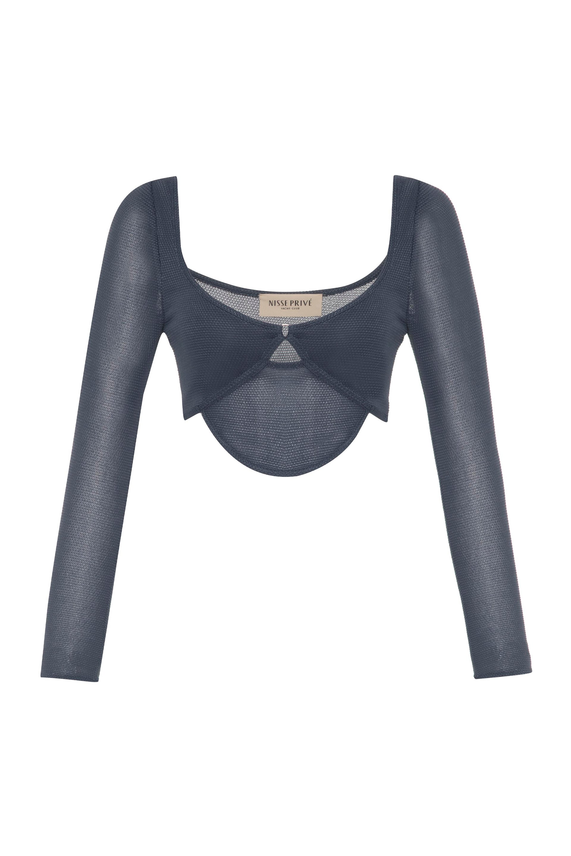 Kavisli etek ucu ve hafif pencere detayıyla dikkat çeken bu kısa balık ağı görünümlü dantel örgü top ile stilinizi yükseltin.