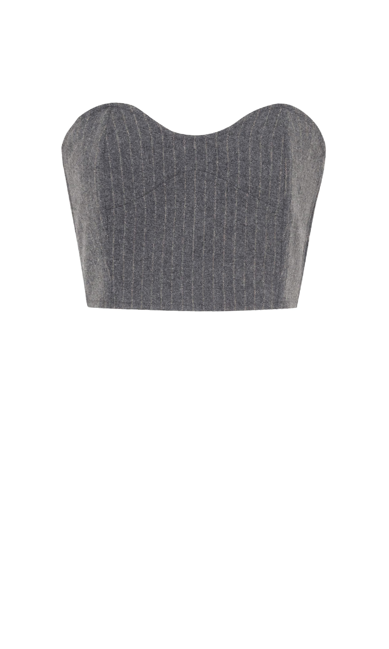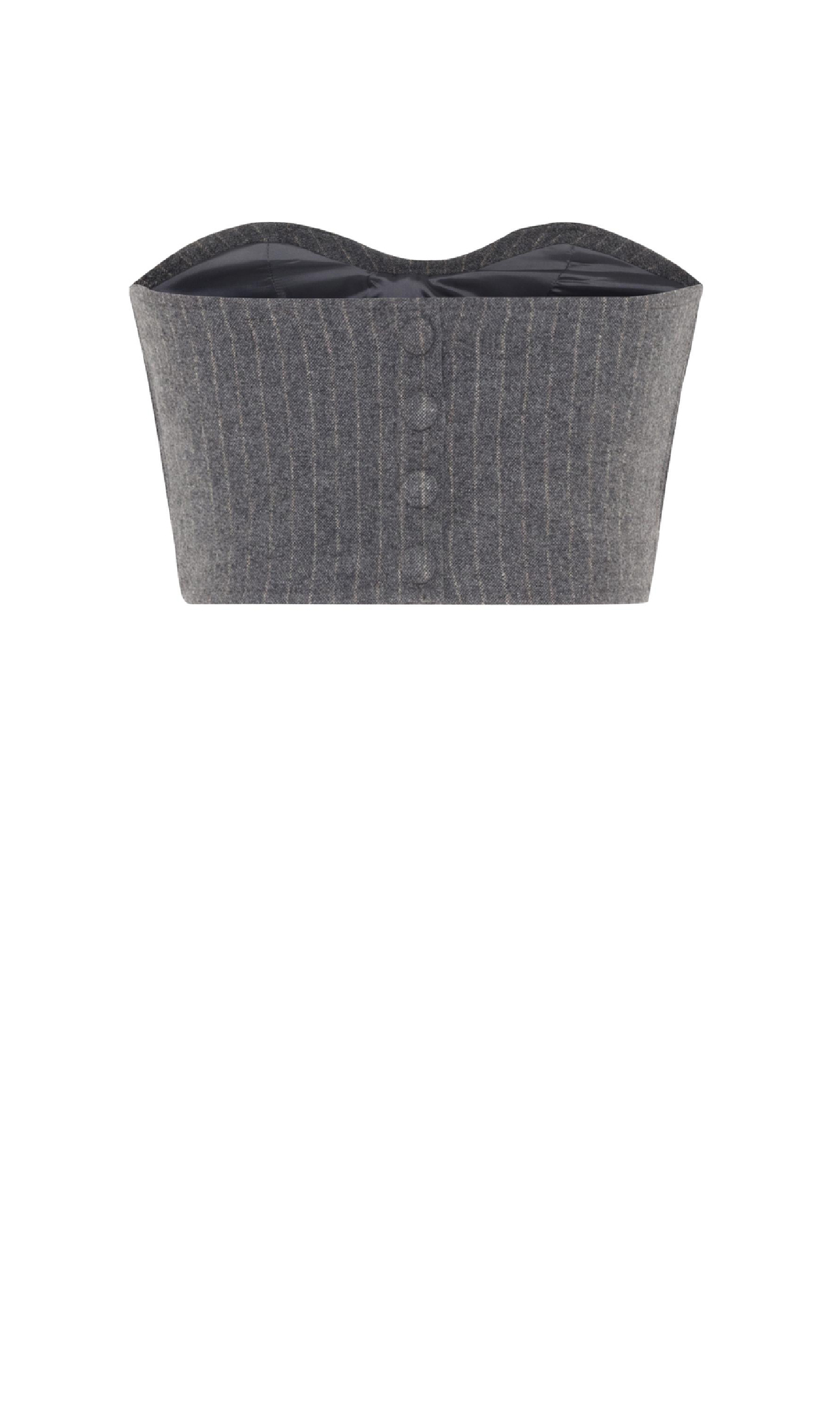 Krier Çizgili Büstiyer, %75 yün, %18 poliamid ve %7 elastan karışımı kumaşıyla hem sıcak hem esnek bir uyum sunar.