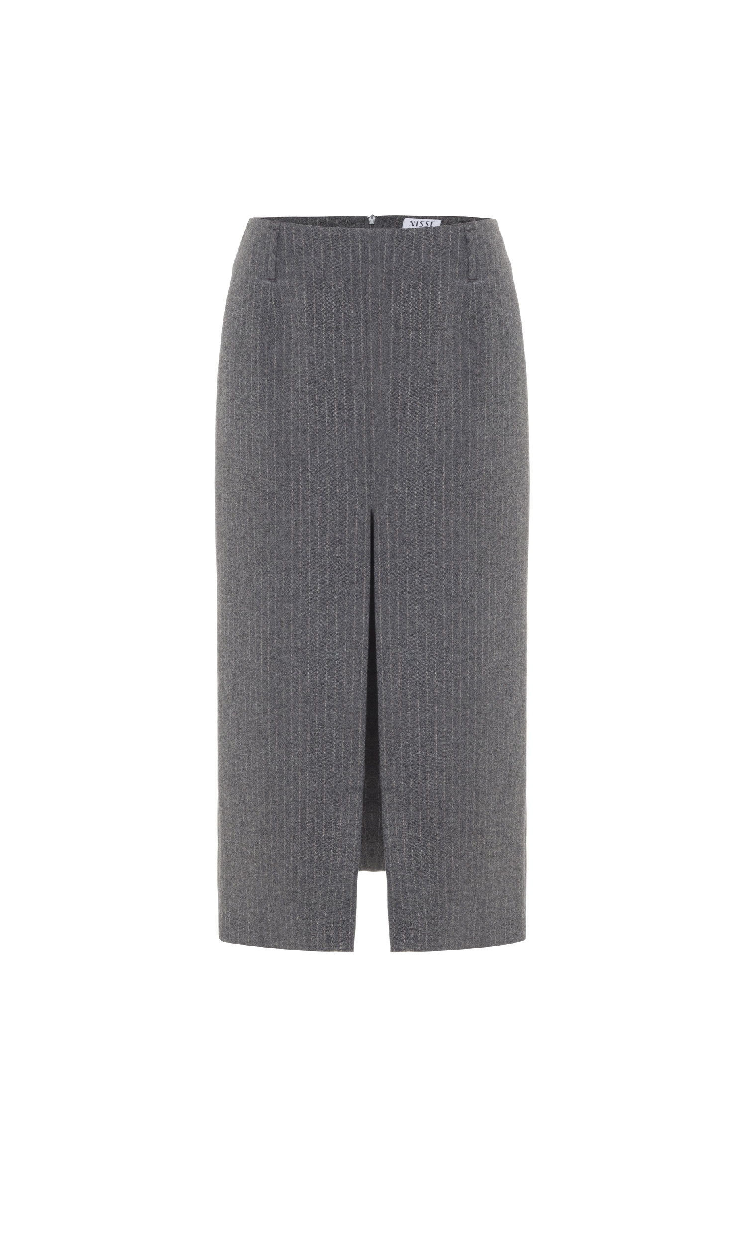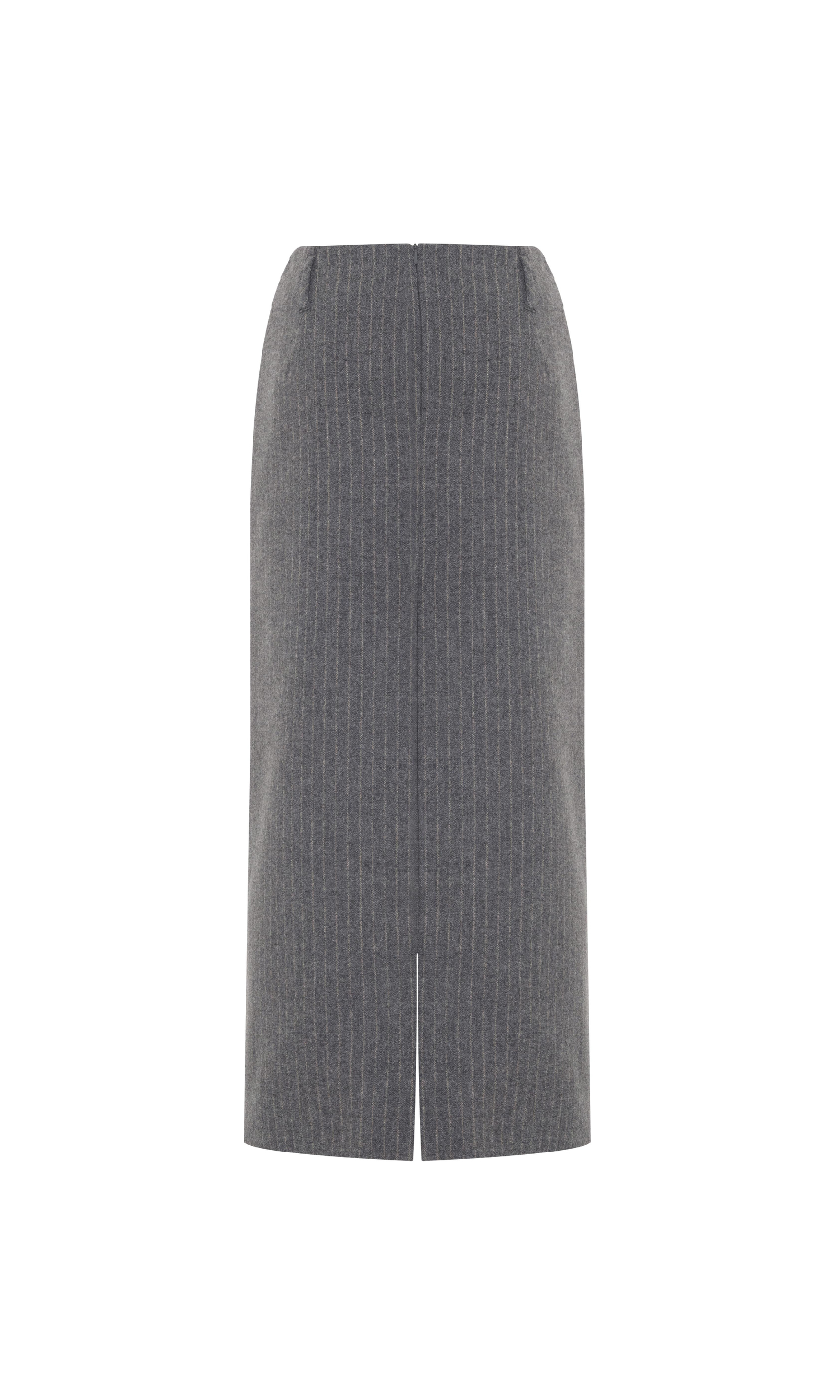 Lin Çizgili Etek, %75 yün, %18 poliamid ve %7 elastan karışımlı kumaşıyla zarif ve akıcı bir duruş sunar, astarı ise %100 viskozdir. Minimal çizgilere sahip formu, modern şehir stiline sofistike ve dengeli bir ifade kazandırır.