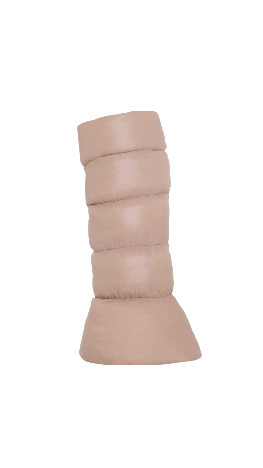 Retro tarzı deri bacak ısıtıcıları, puffer etkisiyle hacimli bir görünüm sunarken su itici yüzeyi ve ısı yalıtımı sayesinde sıcak tutar. Vintage dokunuşlu bu aksesuar, hem şık hem de fonksiyonel bir seçenek olarak öne çıkar.