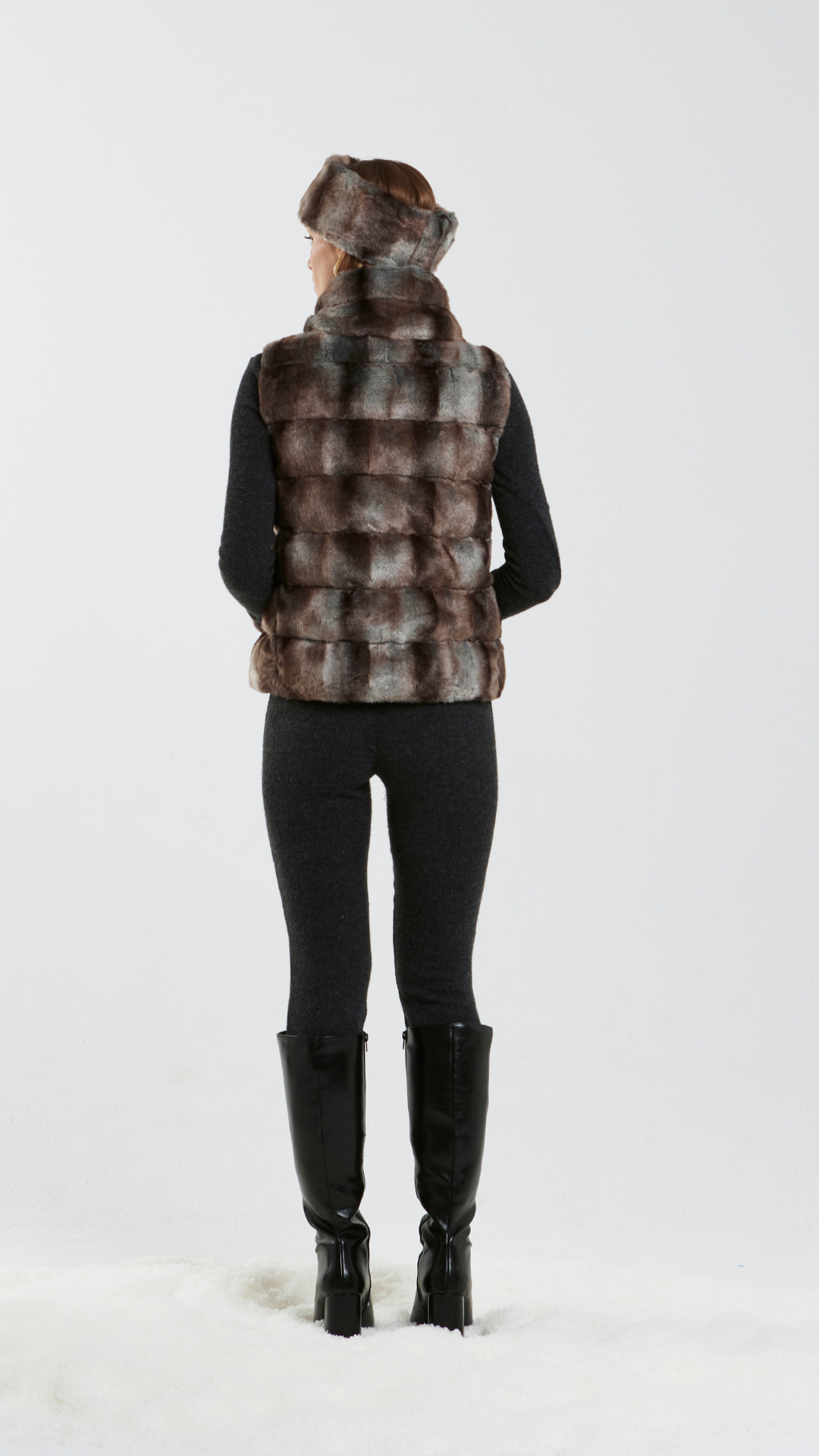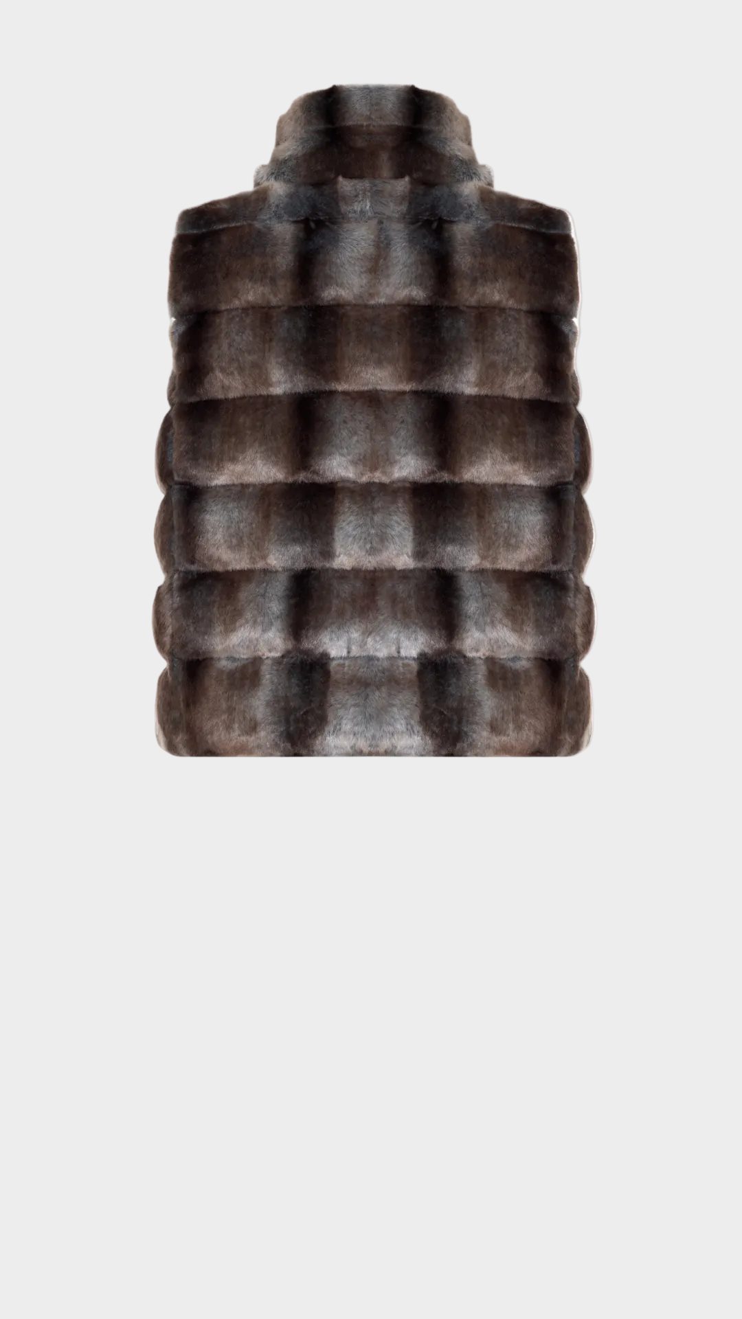 Sleeveless shaved eko-kürk yelek, merkezi fermuarı ve yüksek yakasıyla puffer tarzında modern bir duruş sunar. Yumuşak ama yapılandırılmış formuyla sıcaklık ve elegan bir şıklığı mükemmel şekilde bir araya getirir.